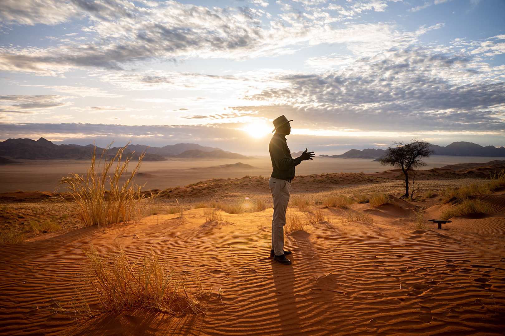 Das 215.000 Hektar große Reservat beheimatet eine erstaunliche Zahl an Tieren, darunter sowohl bedrohte Tierarten als auch berühmte endemische Arten wie die Rotdünenlerche oder der Wüstengoldmull. Eine landschaftliche Besonderheit, die das NamibRand Naturreservat aufweist, sind die sog. Feenkreise, runde Flächen in der Vegetation, die es auf diesem Kontinent nur in Namibia zu bestaunen gibt. Besonders die Vielfalt ursprünglicher Landschaften und die Schönheit der Natur machen das Gebiet zu einem eindrucksvollen Aufenthalt während einer Namibiareise, den man nie mehr vergisst.