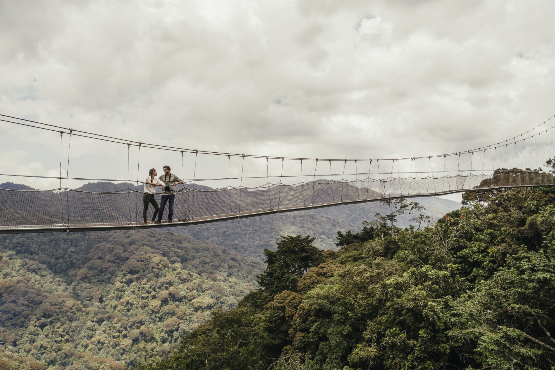 Dieser Canopy Walk ist der seiner Art in ganz Ostafrika und der dritte in ganz Afrika. Sie werden Affen sehen, die sich in den Baumwipfeln bewegen, Vögel, die über und unter Ihnen fliegen und einen wunderschönen Blick auf den riesigen Nyungwe-Wald haben- ein atemberaubender Anblick.