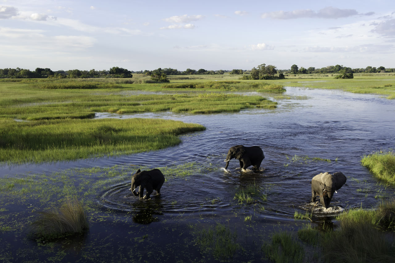 Dieses Gebiet befindet sich an der Spitze der sogenannten Mopane-Zunge – der Ort, an dem das Flutwasser des Okavango auf die trockene Wüstenlandschaft trifft. Wer seltene und vom Aussterben bedrohte Tierarten sowie eine vielfältige Vogelwelt in einem ihrer letzten verbleibenden natürlichen Lebensräume beobachten möchte, hat hier in Botswana auf einer Safari im Okavango Delta besonders gute Chancen.