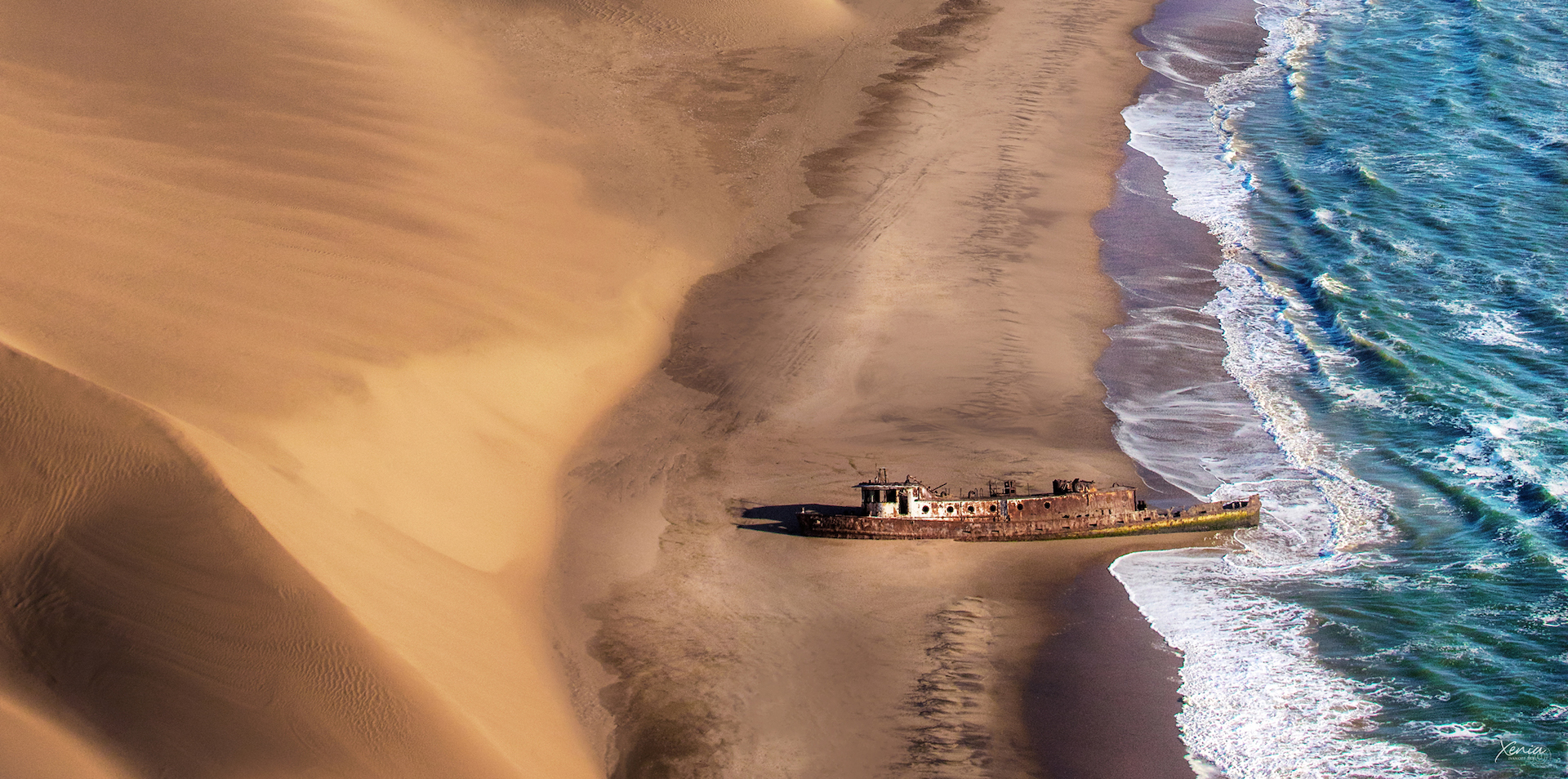 Die Skelettküste im Nordwesten Namibias ist eine der beeindruckendsten und lebensfeindlichsten Landschaften der Welt. Ihren Namen verdankt die Skelettküste den Schiffen, die hier wegen des Wetters im Laufe der Jahrhunderte sanken.