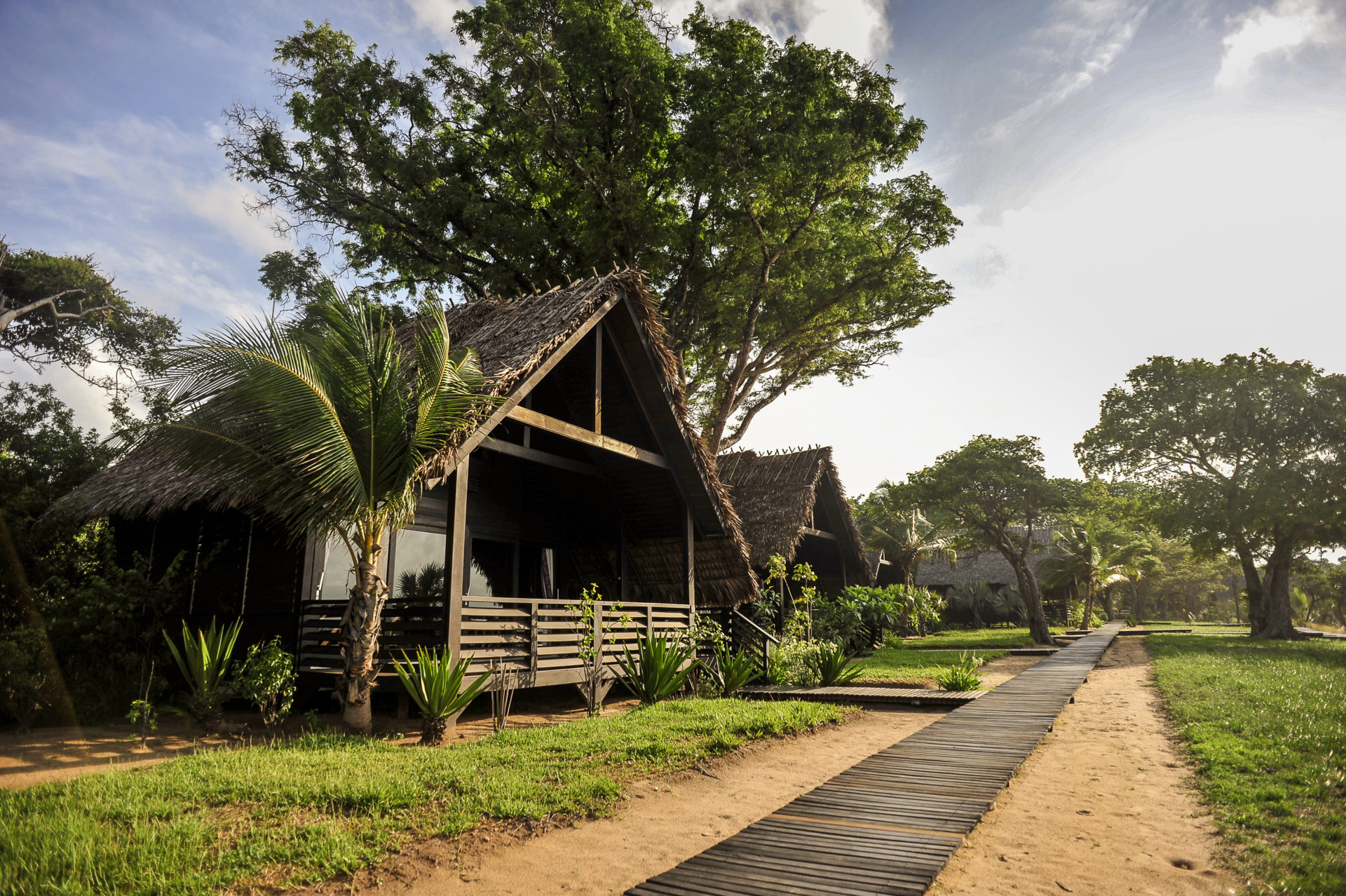 Entlang des Strandes befinden sich 24 wunderschön eingerichtete Holzvillen – jede davon mit einer eigenen geräumigen Terrasse samt Meetesblick. Die Chalets sind einfach aber ansprechend ausgestattet mit Möbeln aus madagassischem Rosenholz. Jede Villa verfügt über ein Wohnzimmer, ein Schlafzimmer und ein eigenes Bad sowie einen privaten Ruheraum, der über eine kleine Treppe erreicht werden kann. Nicht zu vergessen die große Eckbadewanne, in der man sich so richtig entspannen kann.