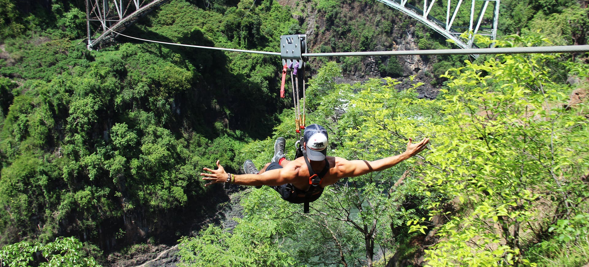 Batonka ist schick, modern und erinnert mit seinen weitläufigen Gärten und weitläufigen Veranden an die kolonialen Wurzeln von Victoria Falls. Nur fünfzehn Gehminuten vom Stadtzentrum und verschiedenen Aktivitäten entfernt, ist es ein bequemer Ausgangspunkt, der auch Ruhe und Abgeschiedenheit von dieser geschäftigen Abenteuerhauptstadt bietet. Die Viktoriafälle selbst (einheimisch als Mosi-oa-Tunya – „der donnernde Rauch“ – bekannt) bedürfen keiner weiteren Vorstellung.