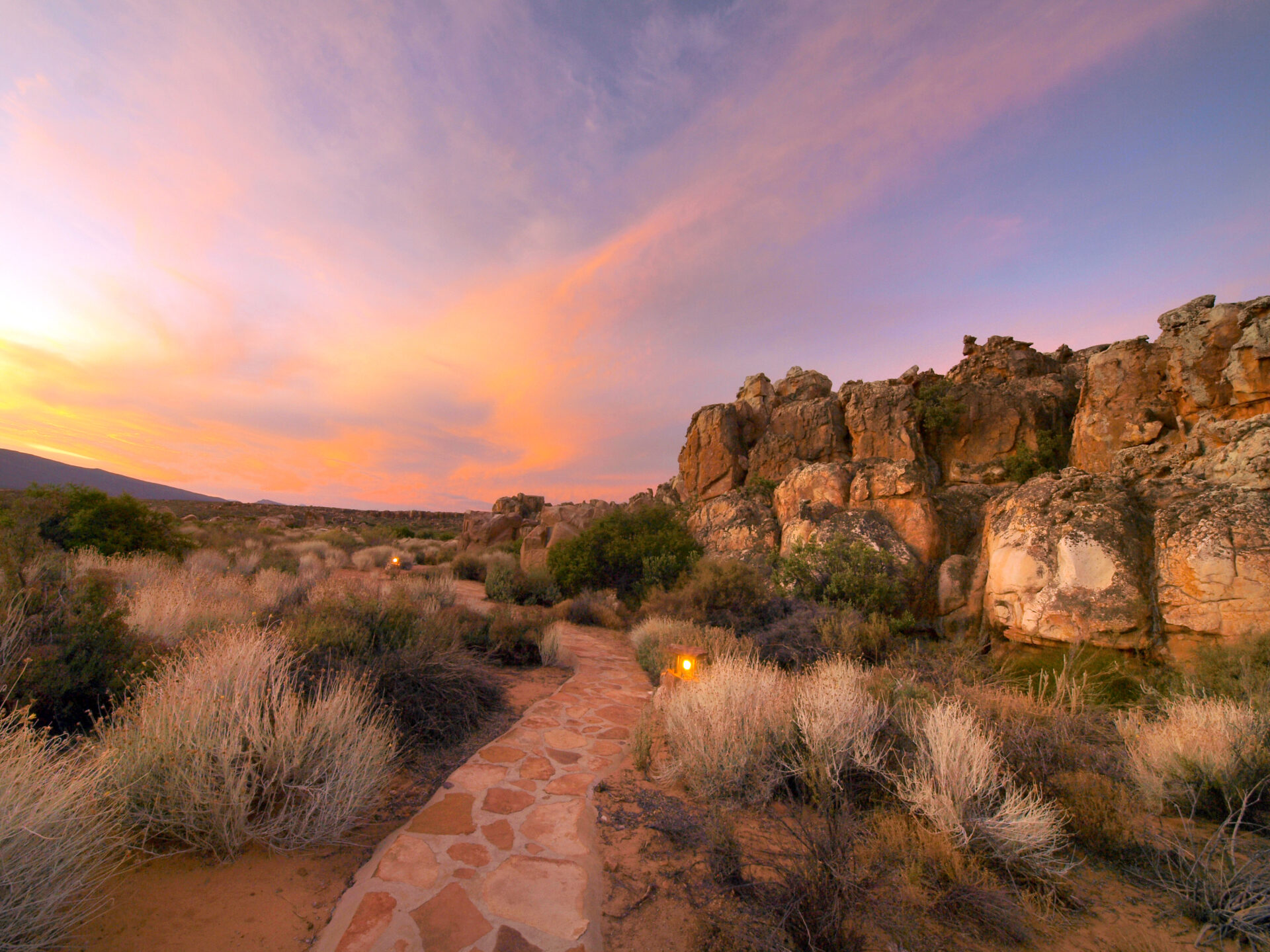 Das Naturschutzgebiet Kagga Kamma ist ein einzigartiges Stück Wildnis in der Cederberg-Region Südafrikas. Die trockene Landschaft mit bizarren Felsformationen, schroffen Bergen und offenen Ebenen voller Fynbos und Sukkulenten hat etwas Außerweltliches. Und es ist diese dramatische Landschaft, die einst die Heimat der San-Buschmänner war, die die Kagga Kamma Lodge inspiriert: Von den traditionellen Hütten im afrikanischen Stil, den ungewöhnlichen Höhlensuiten, die in die Sandsteinfels-Überhänge gebaut sind, und dem besonderen Open-Air Suiten. Im Reservat gibt es viel zu unternehmen und es ist eine großartige Wahl für diejenigen, die die Natur und Outdoor-Aktivitäten mit allen Sinnen erleben möchten.
