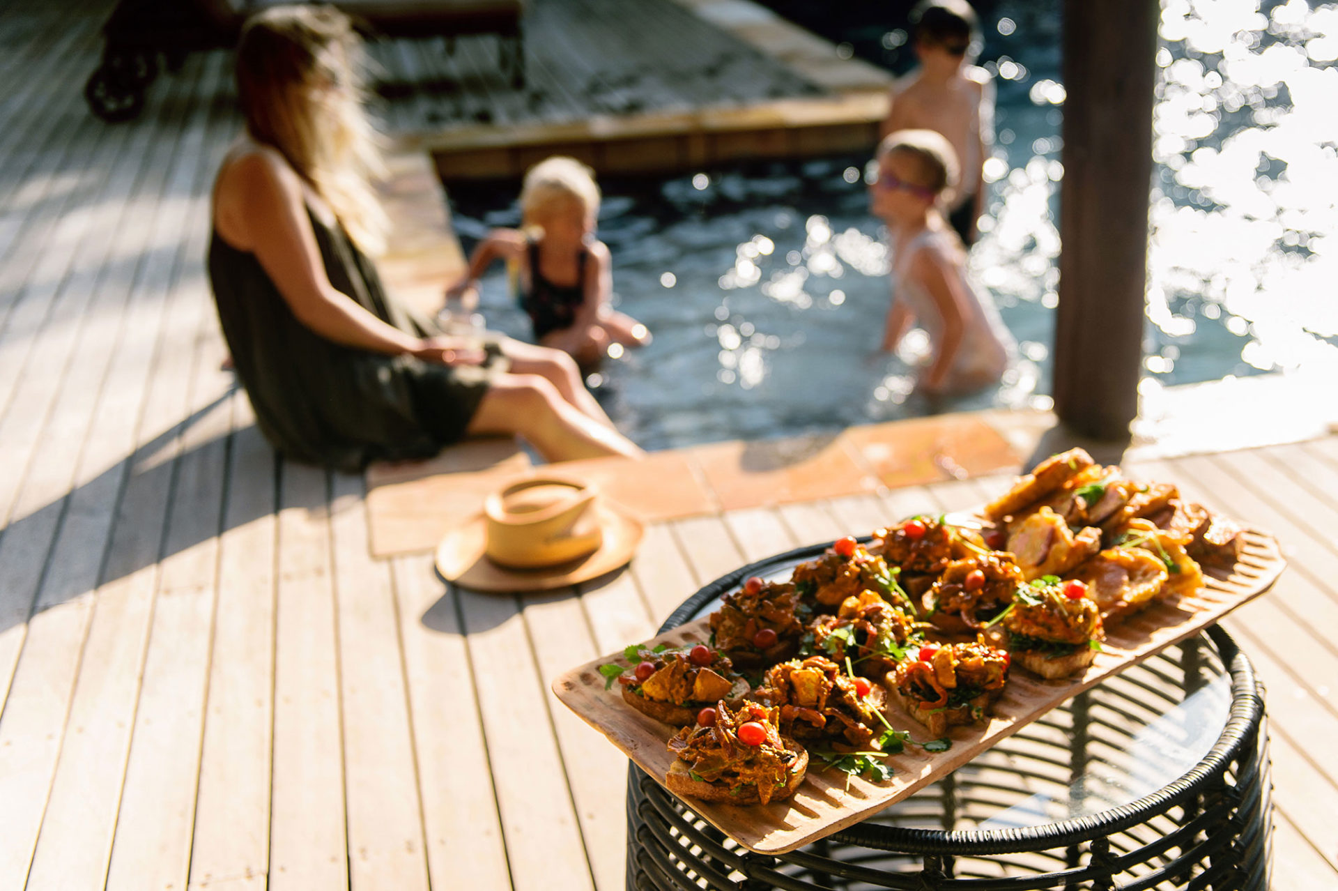 The six suites are effortlessly sleek and sexy and with enormous king-size beds atop shiny floors and entire glass walls interspersed in the wood panelling. For some afternoon down-time, slink outside to the deck and take in the view from your private pool or cosy up in a slouchy armchair in the living room. Bathrooms are enormous and feature powerful rain showers and free-standing tubs. And just so you don’t forget that you really are on safari, there are outdoor showers with a view too. jetzt das in deutsch ohne das es ein plagiat wird. gleiche länge ungefähr
