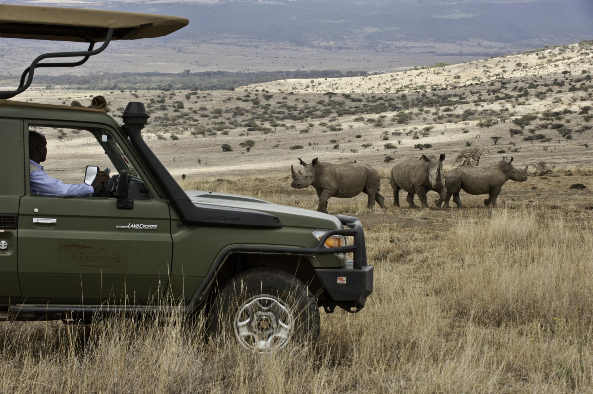 Das Lewa House liegt auf einem markanten Hügel im Lewa-Downs-Gebiet im Norden Kenias. Die Lodge liegt im Herzen des Lewa Wildlife Conservancy und ist die einzige Unterkunft, die direkt vom Reservat betrieben wird. Das Hauptgebäude, einst ein Privathaus, liegt auf einem Hügel, sodass der Blick über die Plateaulandschaft ungehindert ist – nach Süden zum Mount Kenya und im Norden zur schroffen Mathews Range und dem heiligen Berg Ol Olokwe. Lewa ist bis heute vom Massentourismus verschont geblieben und bietet einige der besten Wildbeobachtungen in Ostafrika.