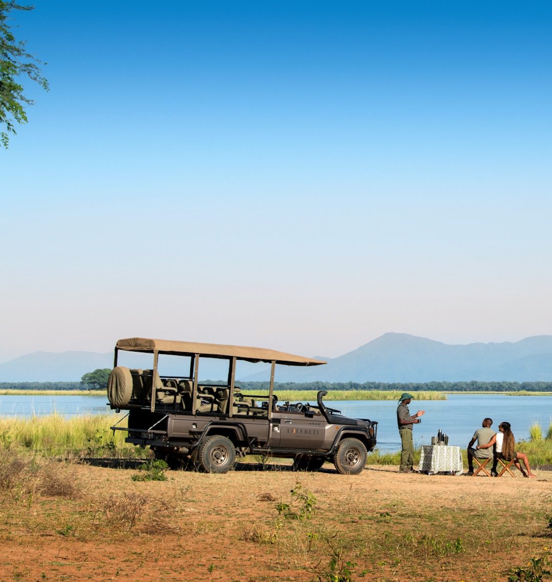 Lolebezi vereint die Annehmlichkeiten einer luxuriösen, intimen Lodge mit der unberührten Wildnis des Lower Zambezi Nationalparks. Auch beim Bau wurde darauf geachtet, den Fußabdruck so klein wie möglich zu halten: Bäume wurden in das Design integriert, der Essbereich wurde aus wiederverwendeten Eisenbahnschwellen gebaut, alle Lampen sind mit Solarenergie betrieben.