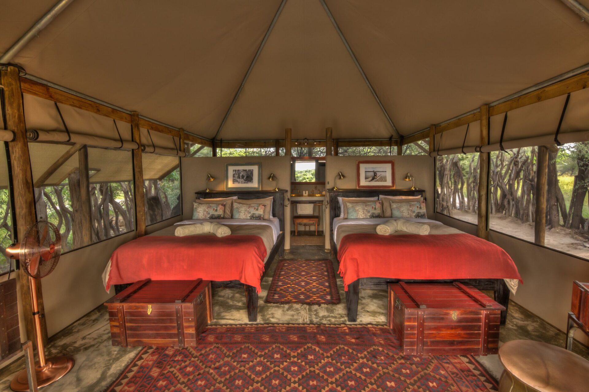 Meno A Kwena, was soviel wie „Zähne des Krokodils“ bedeutet, liegt an der Grenze zum Makgadikgadi Pan National Park, unweit des Nxai Pan National Parks. Das Camp befindet sich auf traditionellem Stammesgebiet und wurde auf einer Klippe errichtet, von der man einen einmaligen Ausblick auf den Boteti Fluss genießen kann. Das Meno A Kwena ist ein klassisches Safari-Camp, im Besitz von David Dugmore, einem erfahrenen Guide und Botswana-Fan. Das Meno A Kwena ist eines der vielen 5-Sterne-Camps in Botswana und bietet seinen Gästen absoluten Luxus und pure Entspannung. Es besteht aus acht Zelten im Vintage-Stil, die alle dank der Lage des Camps – das Camp liegt auf einer Klippe – über den Boteti Fluss blicken. Der Fluss zieht eine Menge an verschiedenen Wild- und Raubtieren an, sie werden das Kommen und Gehen der Tiere entspannt von Ihrer Veranda aus beobachten können. Das Camp hat verschiedene Aktivitäten im Angebot, von Pirschfahrten über Flugsafaris bis hin zu Ausflügen auf dem Quad. Bei dieser Auswahl ist für Jedermann etwas dabei.
