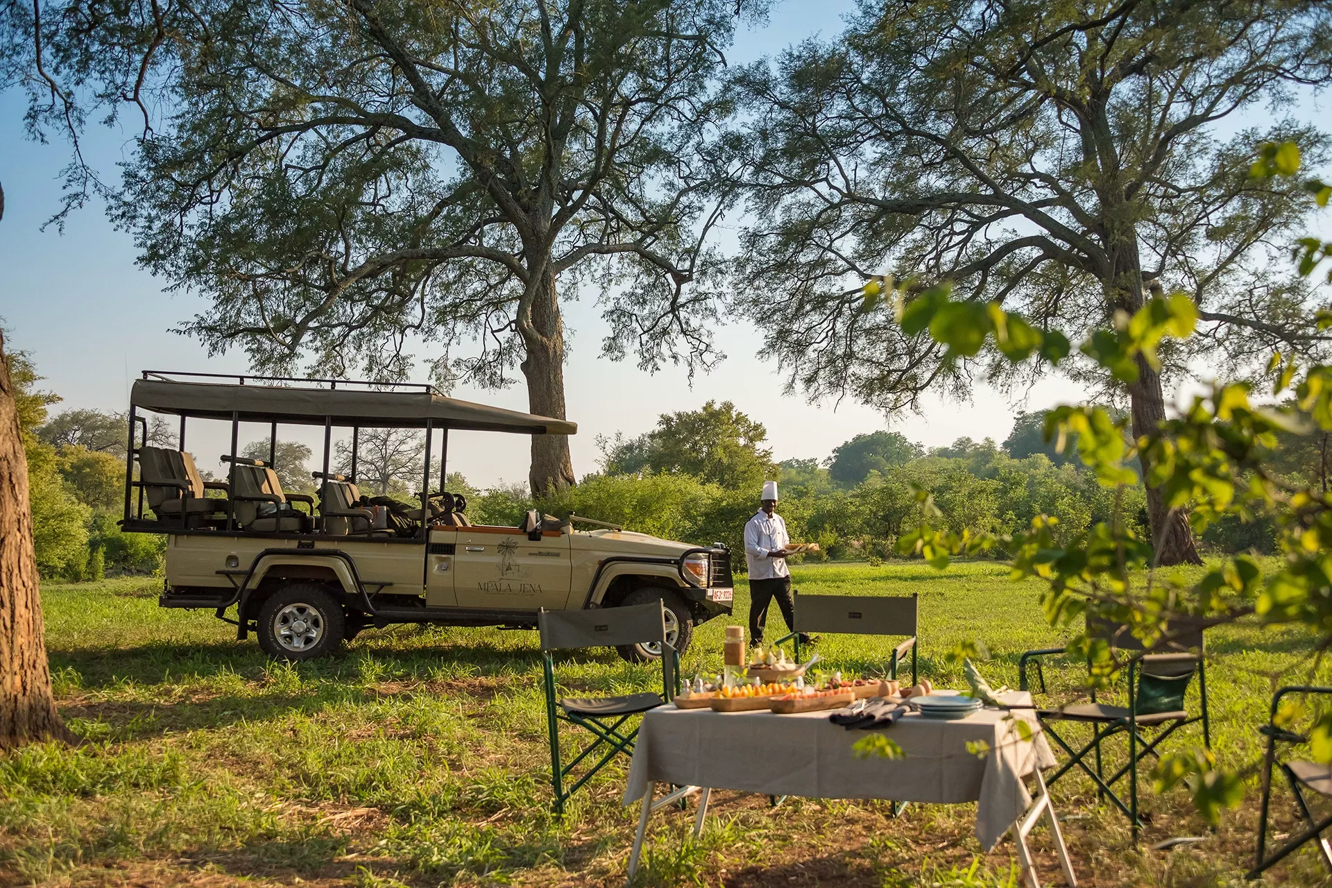 Die Viktoriafälle gehören zu den dramatischsten und ikonischsten Szenen der Welt. Hier rauscht der Sambesi über eine 1,2 Kilometer breite Schlucht, ohrenbetäubend und magenzerreißend, bis er 111 Meter in die Tiefe stürzt. Das Mpala Jena Camp liegt nur eine kurze Autofahrt flussaufwärts von diesem Spektakel entfernt, in einer privaten Konzession im Zambezi-Nationalpark von Simbabwe. Und 16 Kilometer innerhalb des Parks ist es ein ruhiger Ort, an dem nichts Ihren Frieden und Ihre Ruhe stört, außer dem Zwitschern der Vögel über dem Kopf…