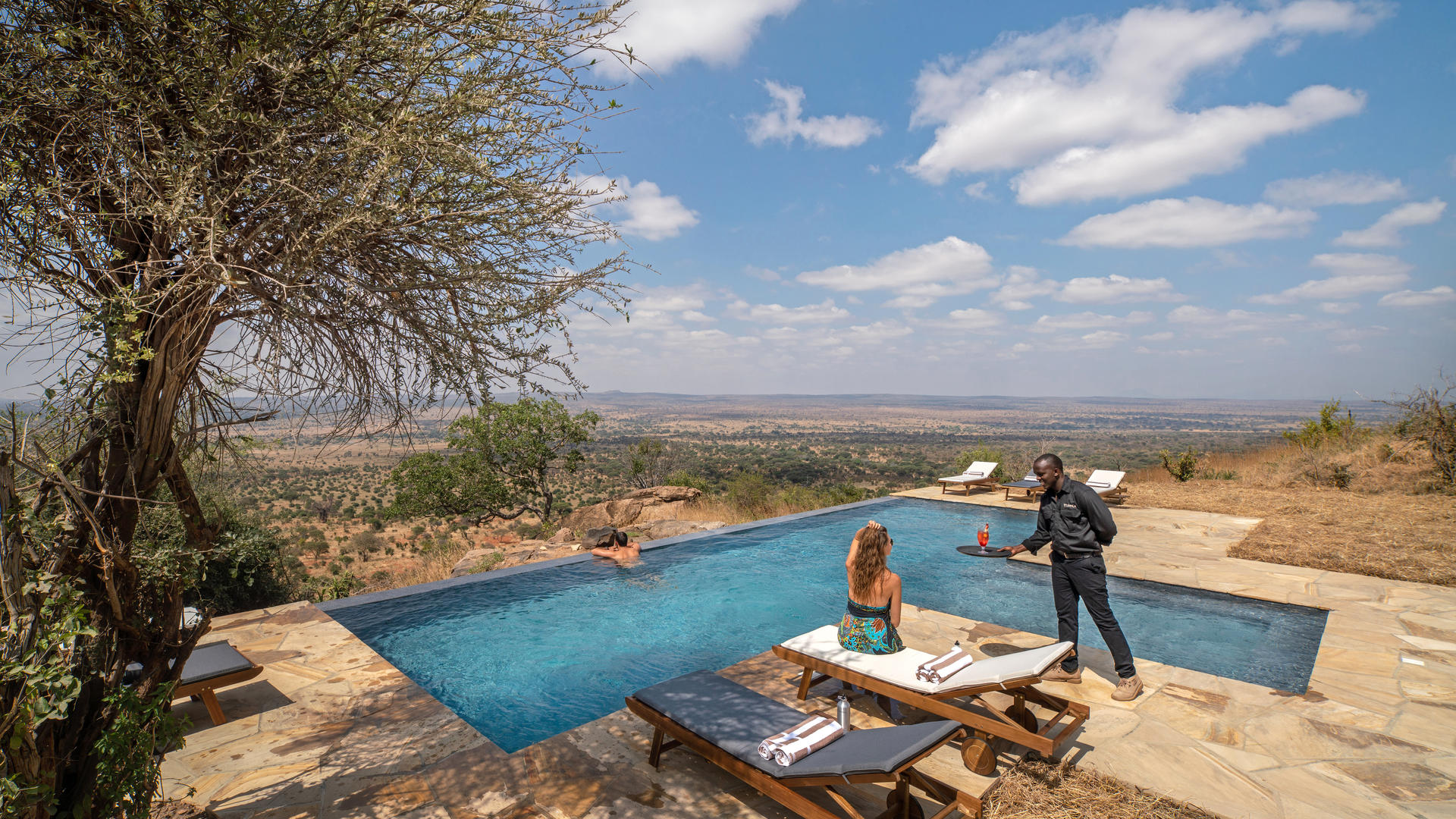 Mpingo Ridge liegt auf der Spitze eines Steilhangs und bietet einen atemberaubenden Blick auf den Tarangire-Fluss und das darunter liegende Tal. Als Gäste in der Lodge erleben Sie ein echtes Gefühl der Wildnis. Ein traumhafter Ort, um die unberührte Umgebung zu genießen und den Blick über die Weite Afrikas, die Ihnen hier zu Füßen liegt, schweifen zu lassen. Die Mpingo Ridge Lodge ist eingebettet zwischen Felsen und Busch und bietet die ideale Umgebung für Leoparden, welche rund um die Lodge beobachtet werden können.
